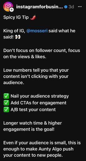Earlier this week, in a post on Threads, the Instagram For Business account dropped some (what they're calling) "spicy IG tips" to help users of the Meta platform optimize their content for more views. At the end of this (threet? threat?), the post referred to the algorithm as "Aunty Algo." Instead of accomplishing the "we are the same," "for the people, by the people," message aimed at a younger, assumably Gen Z audience, the result was some super loud "Steve Buscemi with a backwards hat and skateboard" energy.